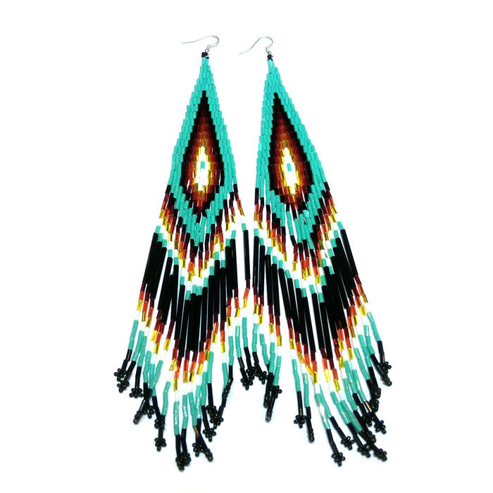 Extra Long Light Blue Navajo Beaded Earrings #BAZ056