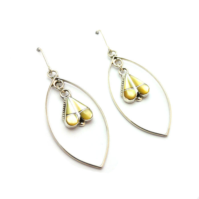 Zuni Mother Of Pearl Hearts Dangle Earrings #MHE521