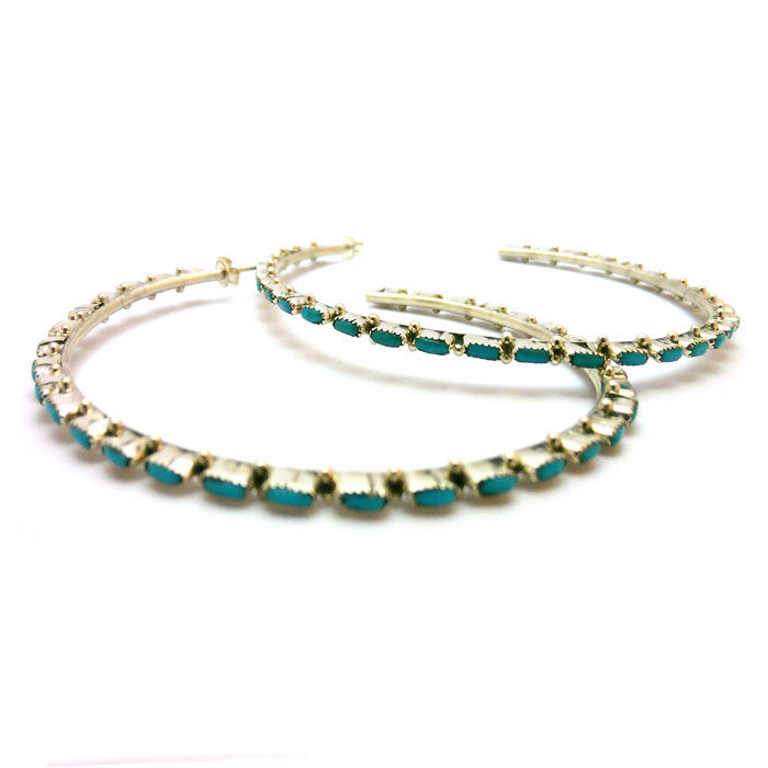 Big Sleeping Beauty Turquoise Zuni Hoops #AUR010