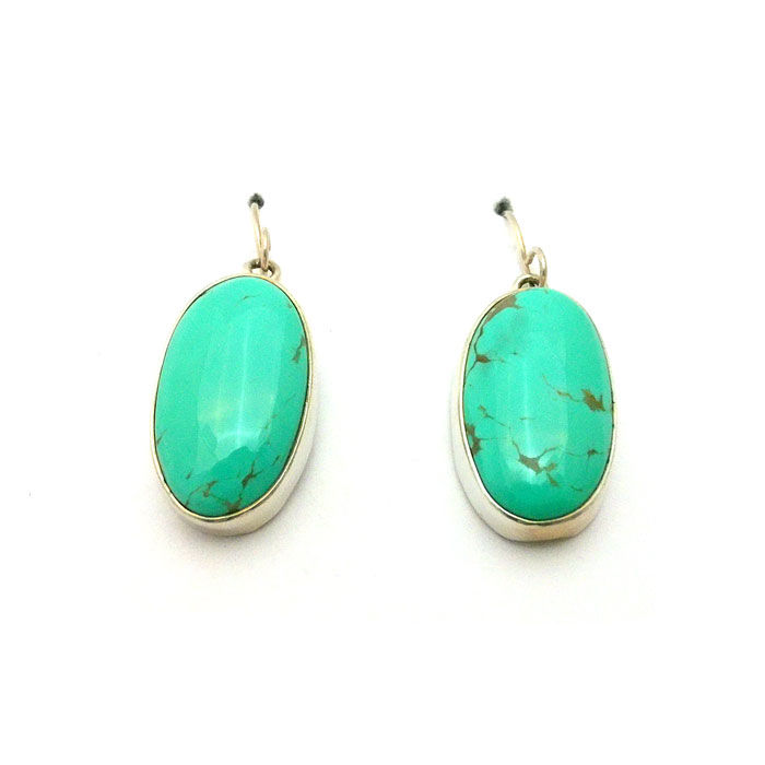 Oval Kingman Turquoise Dangle Earrings #CRO809