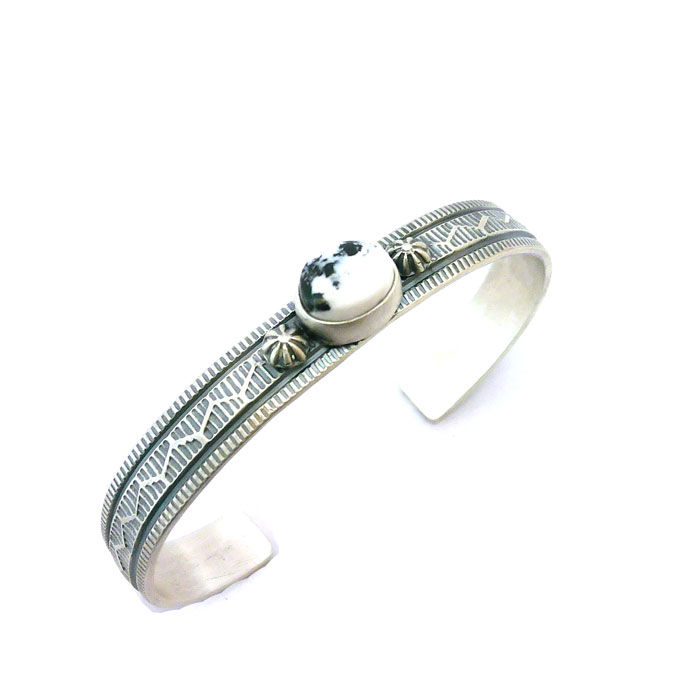 Navajo Inlay White Buffalo Turquoise & Black Jet Thin Cuff #WBC333