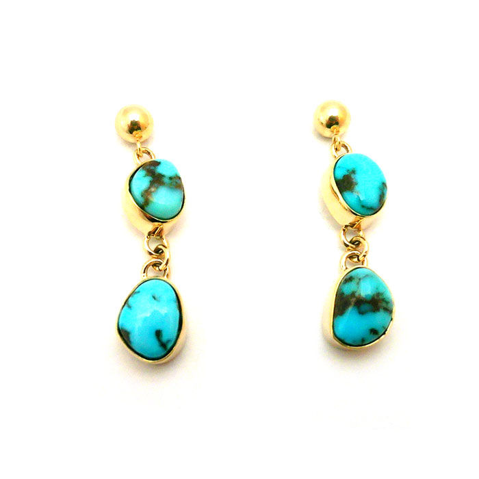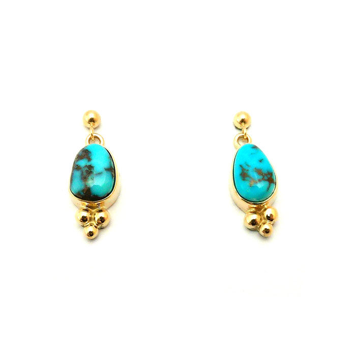 14K Gold Turquoise Dangle Earrings By Rick Tolino #GTT917