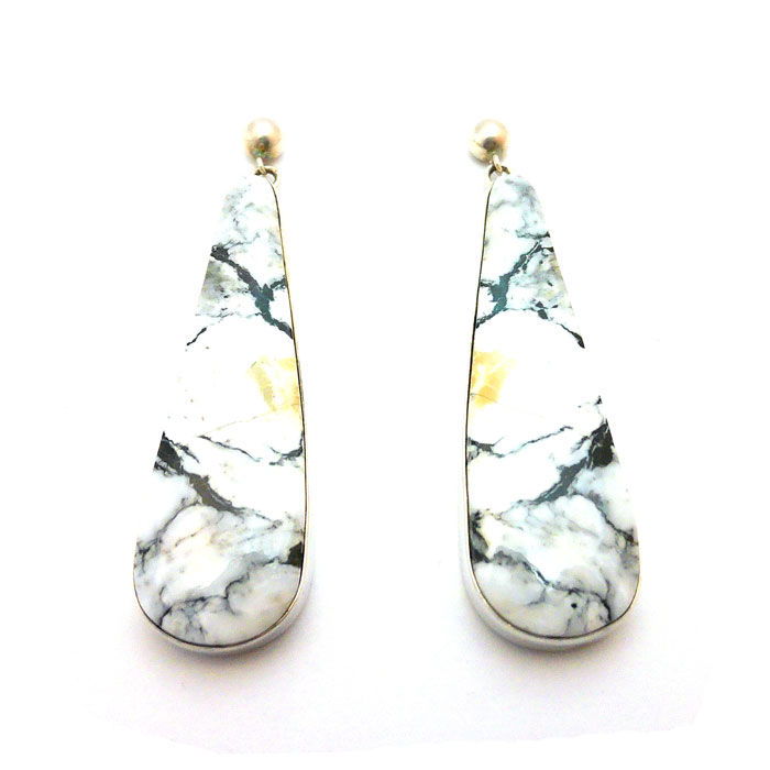 Long White Buffalo Turquoise Navajo Earrings #BIB934