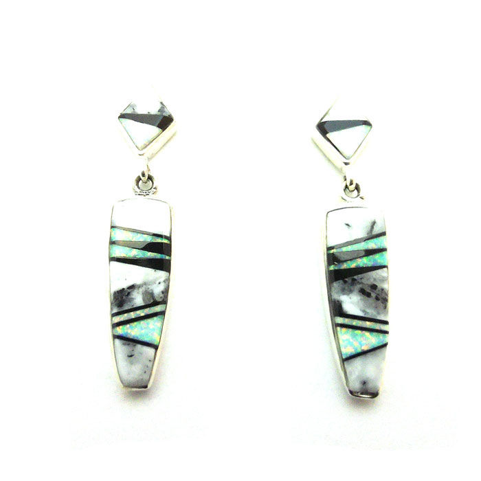 Fire Opal & White Buffalo Turquoise Inlay Earrings #JBW651