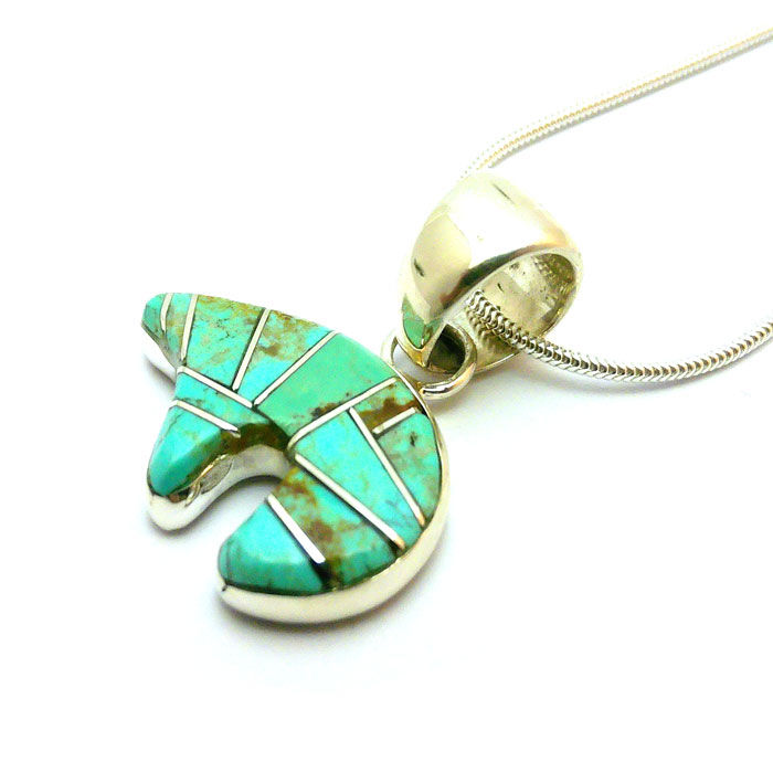 Inlay Turquoise Bear Double Sided Necklace #ABB929