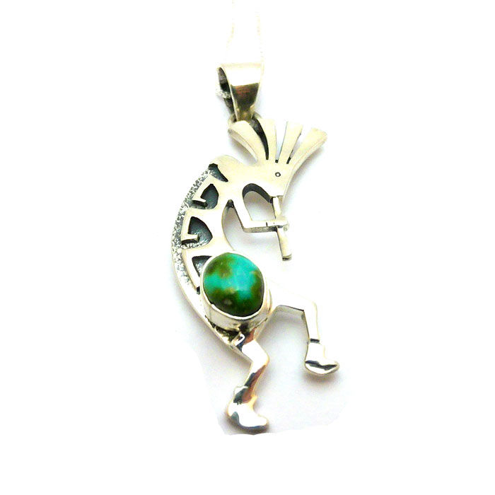 Kokopelli Pendant With Sonoran Turquoise Necklace #PEL647
