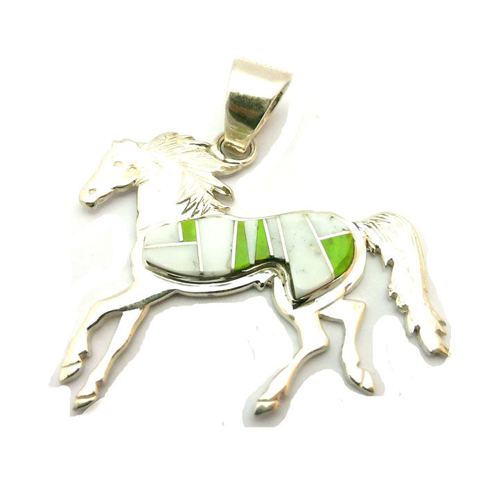 Navajo Inlay Turquoise Galloping Horse Pendant #THO691