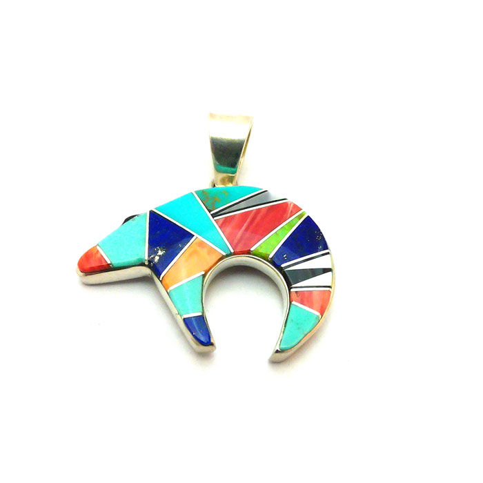 Navajo Inlay Multi Stone Bear Pendant #SMB444