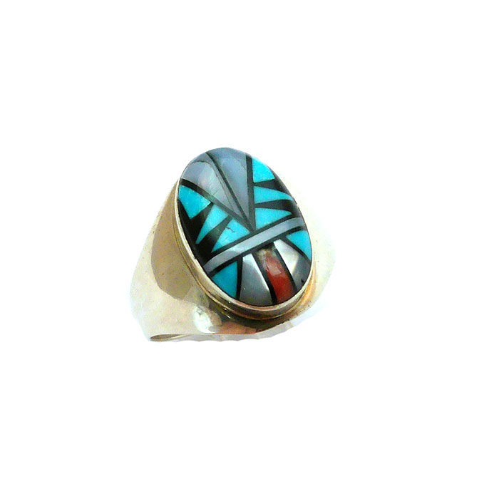 Long Zuni Inlay Turquoise Ring #ZUN487
