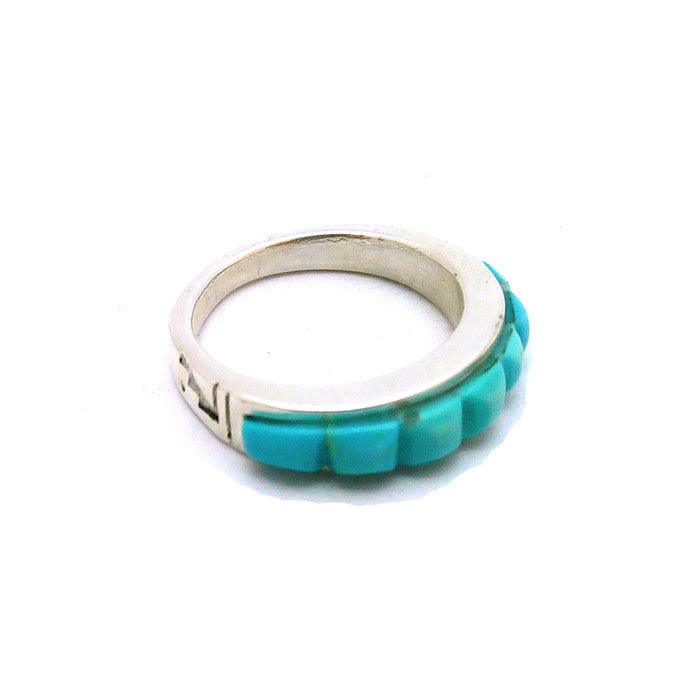 White Buffalo Turquoise & Black Jet Inlay Ring Band #ATR009