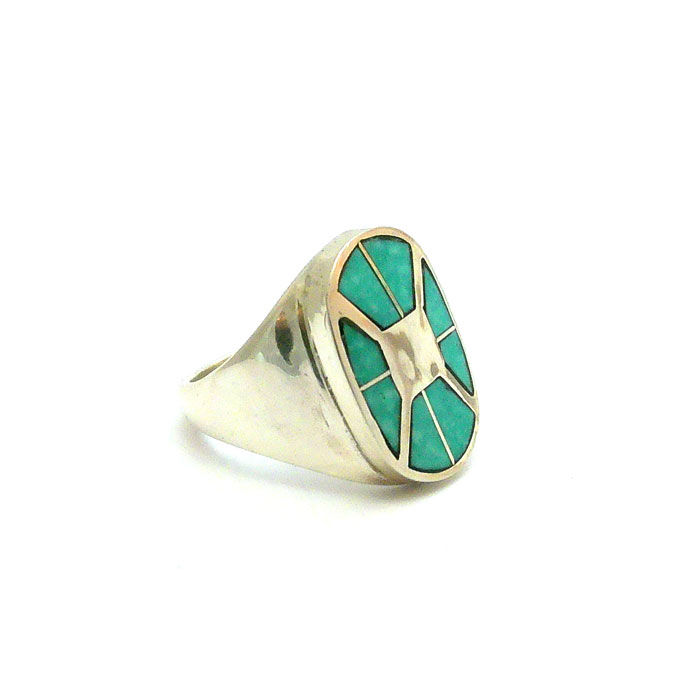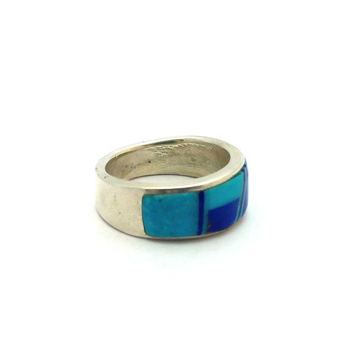 Turquoise & Lapis Lazuli Inlay Navajo Band Ring #LAQ464