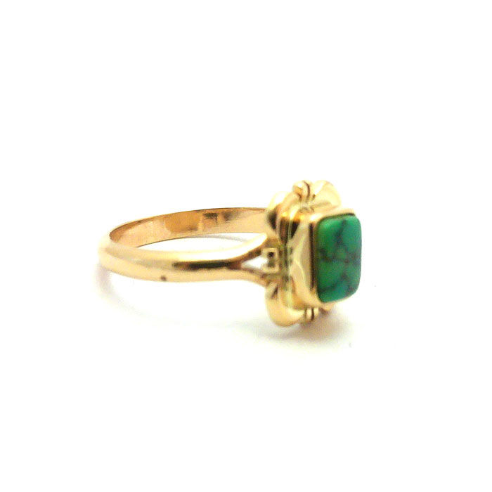 Squared Carico Lake Turquoise 14K Gold Ring #CAR435